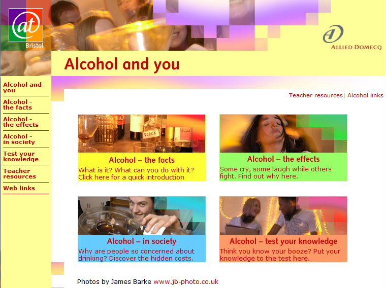 Funded by Allied Domecq, I created a stand-alone exhibit within At-Bristol as well as this accompanying website, on which I led the design and construction. The website features Shockwave versions of some of the games from the exhibit.